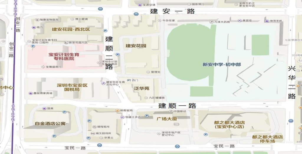新安中學(xué)初中部片區(qū)位于寶安區(qū)新安街道,由建安一路、創(chuàng)業(yè)二路、寶民一路與興華二路四條道路圍合而成,面積約0.13平方公里,區(qū)域內(nèi)部有建順一路、建順二路以及建順二路一巷等支路。