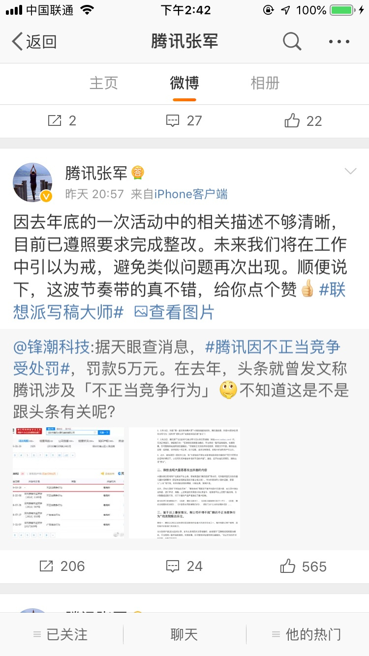 3月20日,微博認(rèn)證為騰訊公司公關(guān)總監(jiān)張軍在微博中解釋:因去年年底的一次活動中的相關(guān)描述不夠清晰,目前已遵照要求完成整改。未來我們將在工作中引以為戒,避免類似問題再次出現(xiàn)。