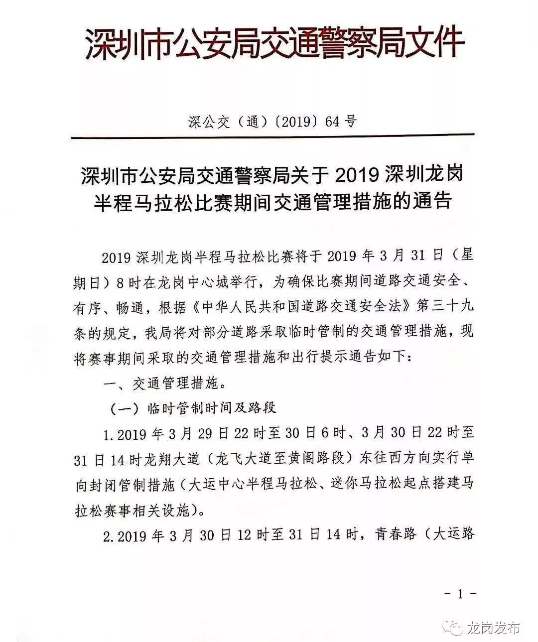 3月30日22時至31日12時,龍廣二路雙向?qū)嵭腥忾]管制措施(龍城廣場迷你馬拉松終點搭建馬拉松賽事相關(guān)設(shè)施)。