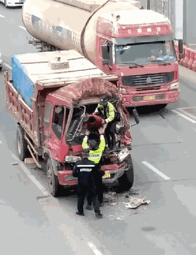 5分鐘,成功施救。經(jīng)過努力,交警成功將司機(jī)從車輛前窗救出,并扶至路邊等待救護(hù)車。