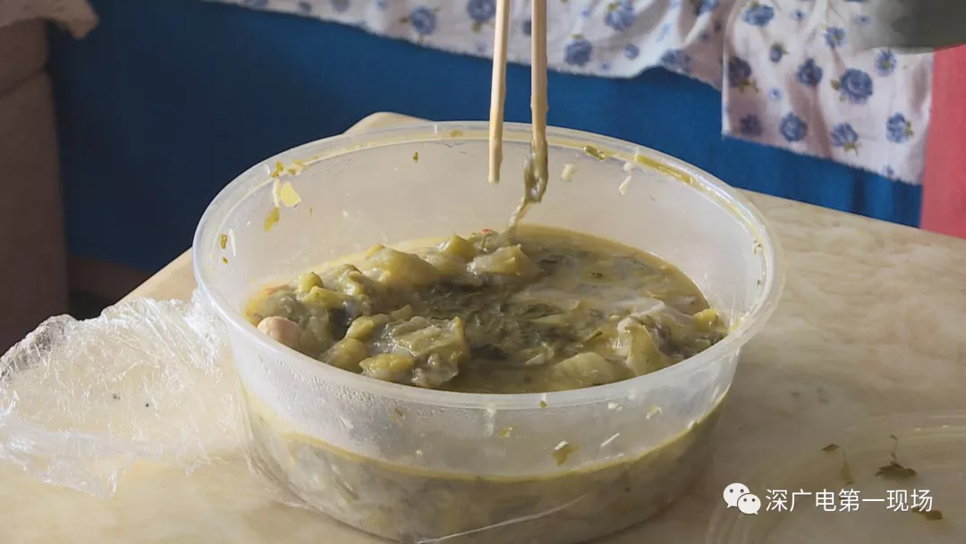 劉女士把那晚沒吃完的酸菜魚放在了冰箱里,希望當(dāng)證物提供給執(zhí)法人員。記者看到這份酸菜魚里。除了魚和酸菜還有粉條等配料。