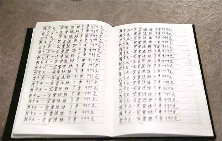 在楊某辦公臺(tái)上有一本筆記本,里面整整24頁(yè)寫得密密麻麻,卻反反復(fù)復(fù)只寫了一句話:“我今天一定要進(jìn)賬3單,999元”。