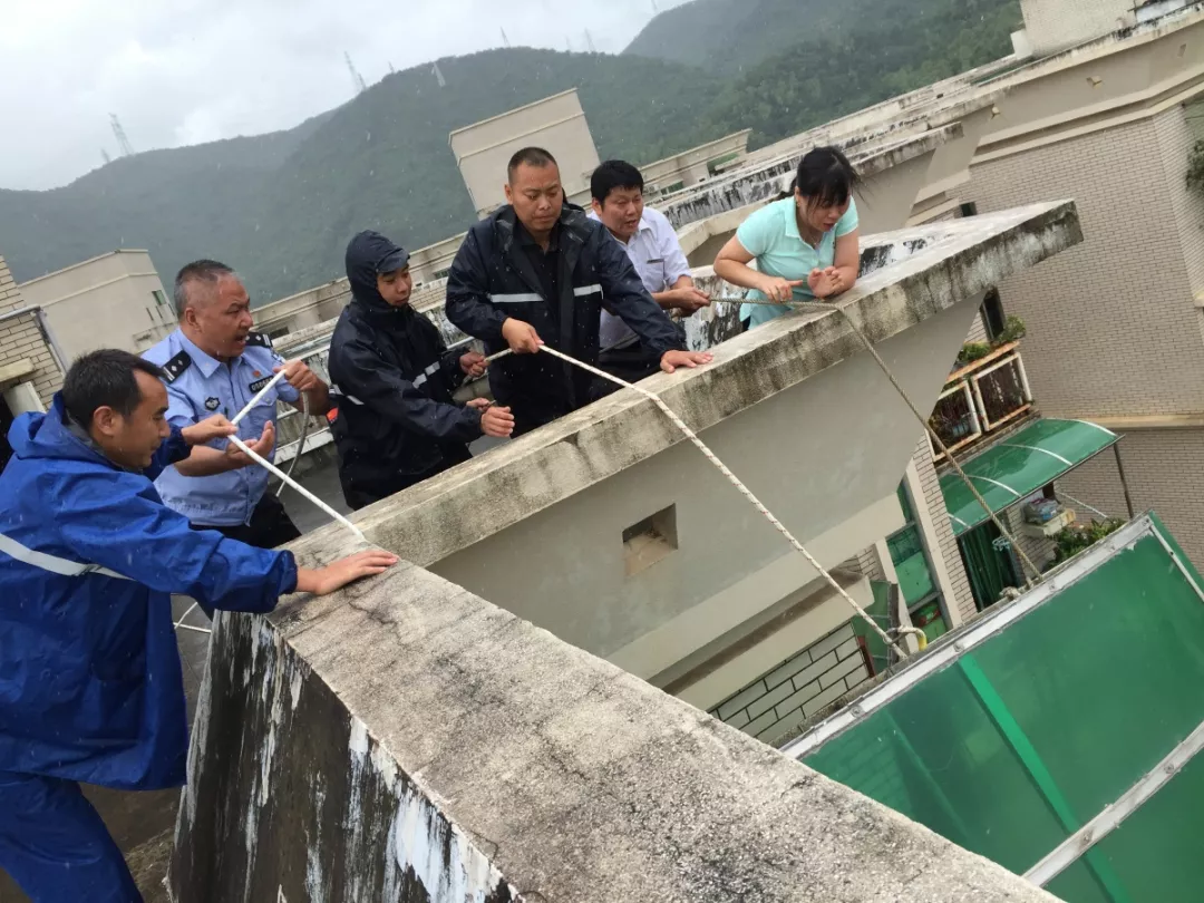▲2017年8月23日中午,在福田區(qū)梅林一村88棟,一家住戶的靠墻陽臺(tái)頂蓬固定支撐點(diǎn)已全部脫落,導(dǎo)致整個(gè)頂蓬向外傾斜,十分危險(xiǎn),福田公安分局梅林派出所民警聯(lián)合社區(qū)居民一起現(xiàn)場(chǎng)處置。