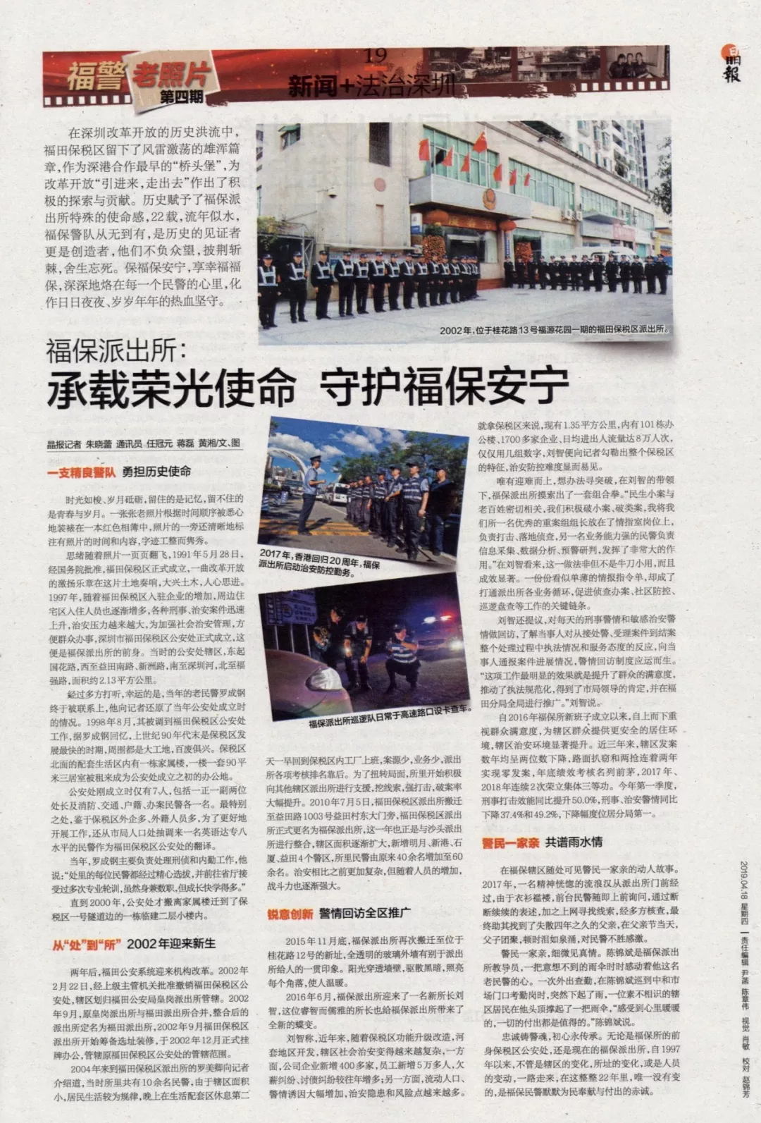 2010年7月5日,福田保稅區(qū)派出所搬遷至益田路1003號益田村東大門旁,福田保稅區(qū)派出所正式更名為福保派出所,這一年也正是與沙頭派出所進行整合,轄區(qū)面積逐漸擴大,新增明月、新港、石廈、益田4個警區(qū),所里民警由原來40余名增加至60余名。治安相比之前更加復雜,但隨著人員的增加,戰(zhàn)斗力也逐漸強大。