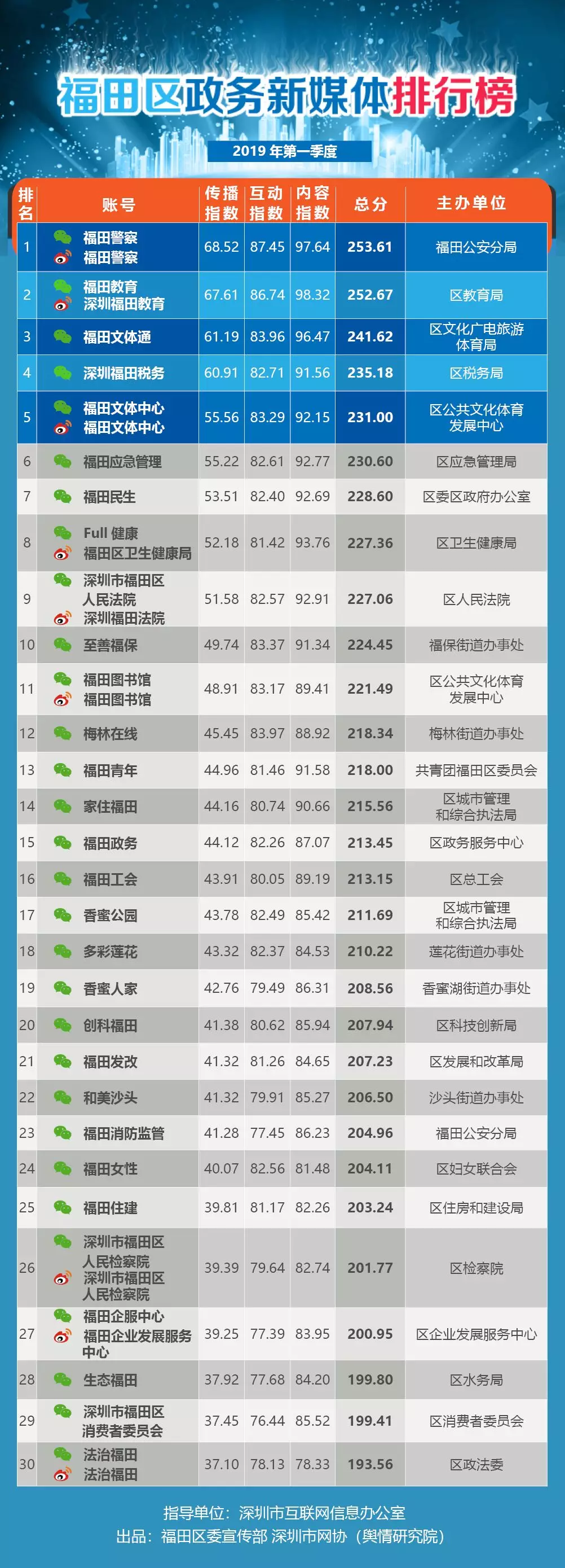 《福田區(qū)政務(wù)新媒體排行榜》出爐啦??!
