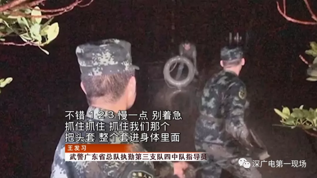 由于深圳灣海水退潮后淤泥深淺不一,直接下海救人非但沒把握,還是魯莽行為,在觀察現(xiàn)場情況,并對(duì)救援進(jìn)行科學(xué)研判后,武警官兵們通過拋投救生圈進(jìn)行救援。