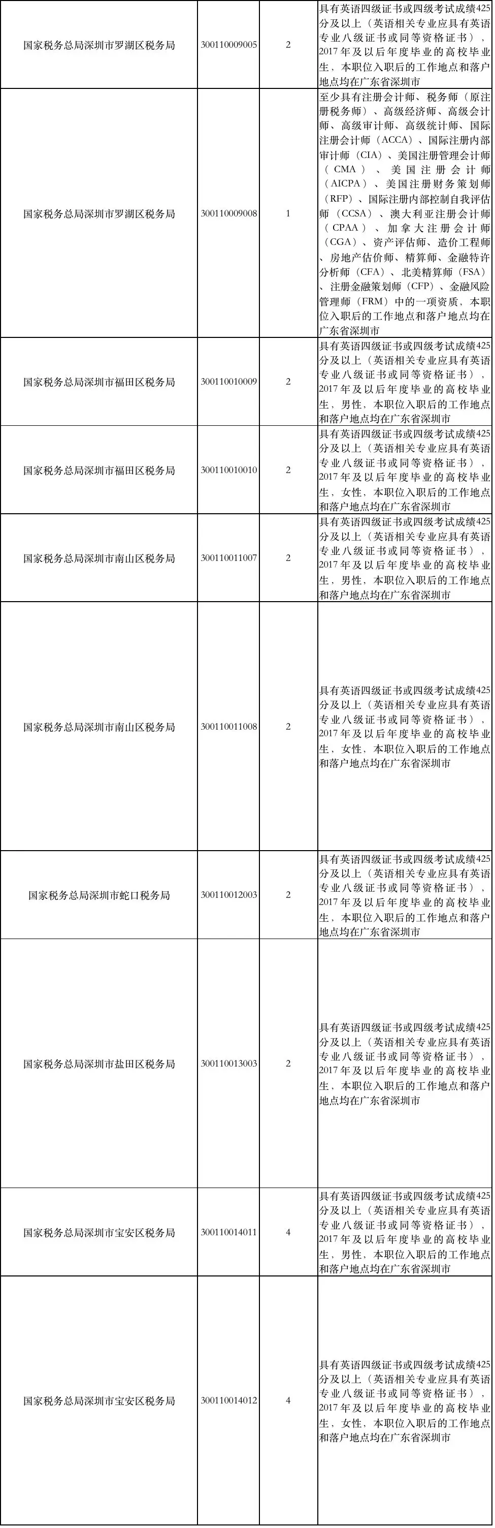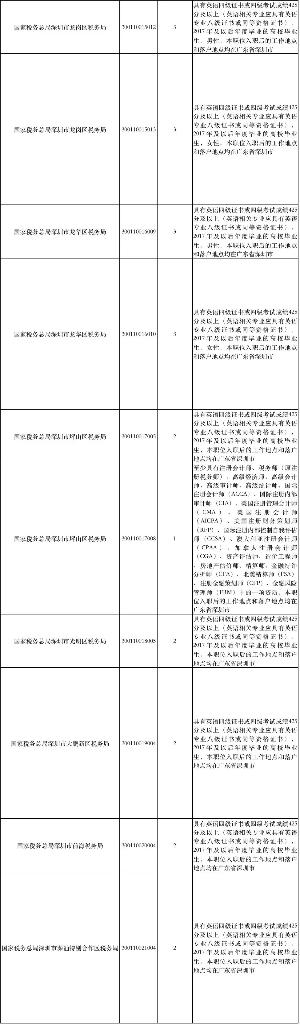 國家稅務(wù)總局深圳市稅務(wù)局補(bǔ)充錄用職位簡(jiǎn)表: