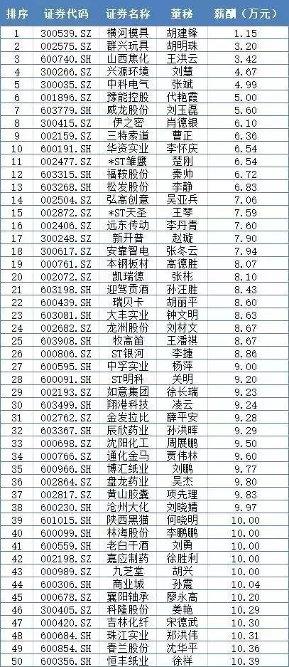 薪酬排行榜倒數前50