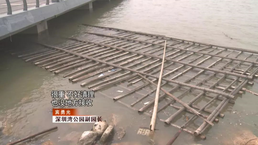 《第一現(xiàn)場》記者立馬跟進,找到了公園管理方。管理方表示,其實我們看到的才只是一小處,深圳灣沿岸十幾公里的范圍,每天都有不少竹排飄過來,不!過?。?!這些竹排卻不!是!源!自!深!圳!