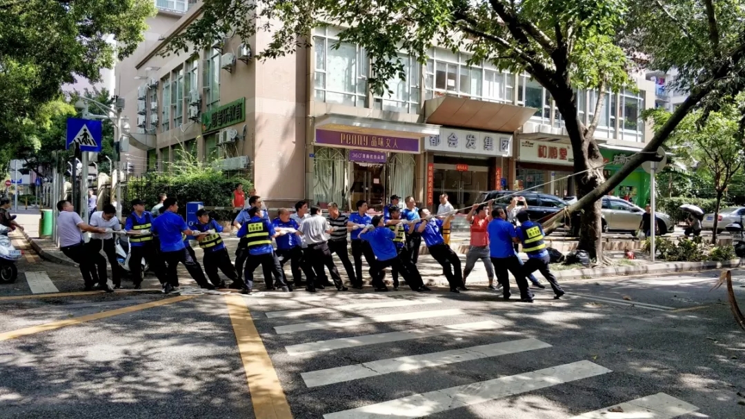 △2018年9月19日,“山竹”臺(tái)風(fēng)后,通心嶺派出所在百花片區(qū)做災(zāi)后清理工作