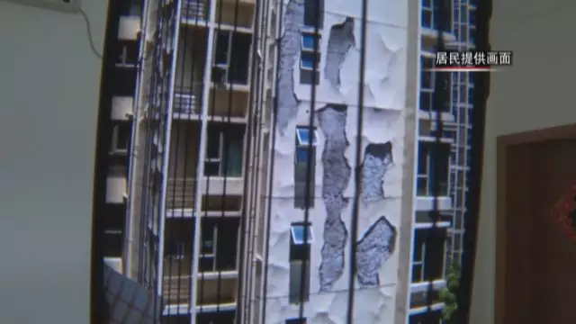樓房外墻部分鼓起堪比“攀巖墻”