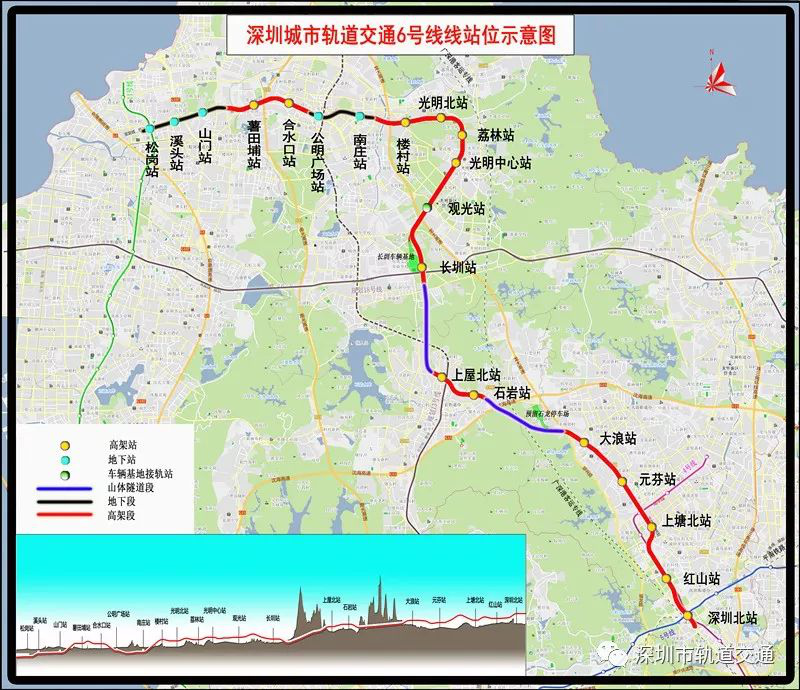 深圳地鐵6號線一期工程由深圳北站至松崗,全長37.85公里,設(shè)站20座,其中換乘站6座。
