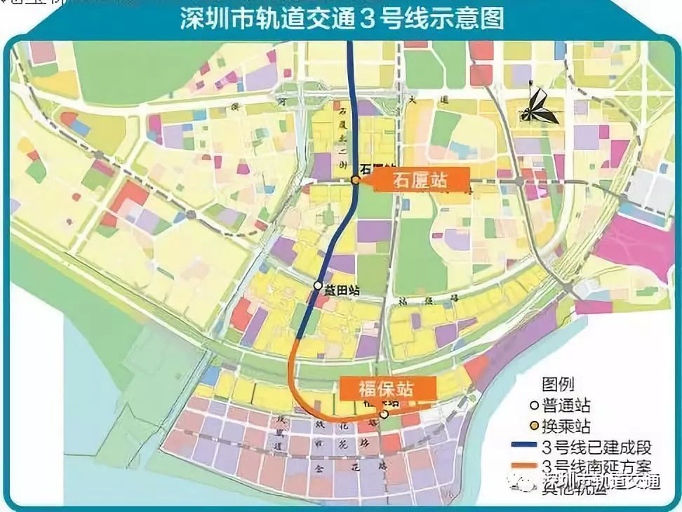 深圳地鐵3號線南延工程自益田至福田保稅區(qū),線路長1.5公里,設(shè)站1座,投資10.1億元。