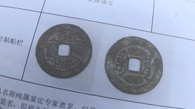 他的寶貝是一枚“乾隆通寶”錢幣