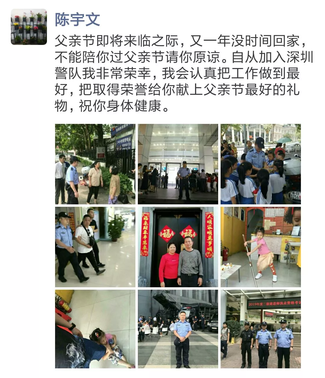 ▲福田派出所民警吳偉朋友圈