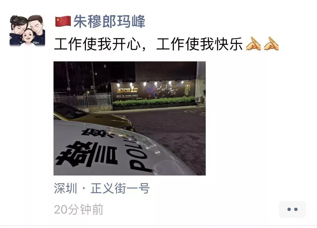 ▲福田派出所輔助人員朱峰朋友圈