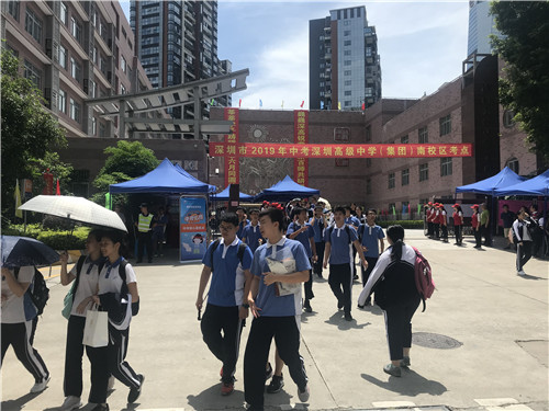 上午10時40分考試完畢,深圳高級中學考點的大部分考生笑逐顏開走出考場,有的考生還向守候在考場外的父母做出勝利的手勢。