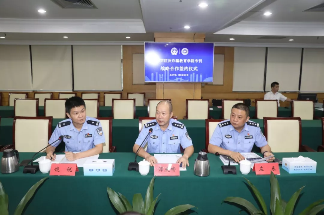 活動現(xiàn)場,福田分局分別與福田區(qū)委政法委、蓮花街道辦、北大深圳醫(yī)院、深圳外國語學校、中國郵政儲蓄銀行、聯(lián)想有限公司(深圳)、平安大廈物業(yè)、馬成時代廣場、卓越世紀廣場、山姆會員店、梅林農(nóng)批市場、順豐快遞共12家單位和企業(yè)簽訂了《福田反詐騙教育學院專刊戰(zhàn)略合作協(xié)議》。