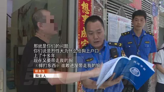 在對狗進(jìn)行暫扣,還是狗主人自行處理的問題上,雙方各不讓步。胡先生的兒子打電話過來,事情出現(xiàn)了轉(zhuǎn)機(jī)。同意執(zhí)法人員把狗帶走,但胡先生必須全程陪同,觀察狗在暫扣期間是否受到了正常對待。