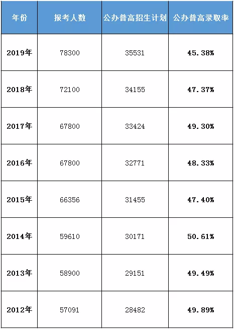 針對網(wǎng)友抱怨的,公辦普高的錄取率問題,小編手工統(tǒng)計了近8年來的普高招生計劃,部分?jǐn)?shù)據(jù)可能有出入,僅供參考。