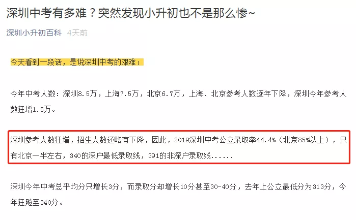 再看看“深圳小升初百科”前幾日發(fā)表的文章《深圳中考有多難?突然發(fā)現(xiàn)小升初也不是那么慘~》