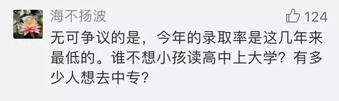 所以,初中生家長無疑是最焦慮的??疾簧瞎k普高,是多花點錢去民辦普高還是進入職高抑或是是輟學(xué)進入社會,這是一個問題。雖然說好的職高也算不錯的出路,但好的職高也不多啊,更何況很多家長沒法接受職高,在很多家中眼中,讀職高就是混日子的;難道初中畢業(yè)年紀(jì)輕輕就要進入社會嘛?絕大部分家長肯定不希望是這樣的,但殘酷的事實擺在那兒,于是他們焦慮著。
