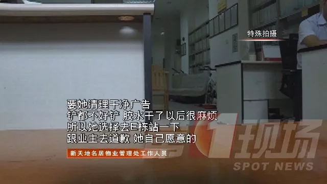 因為張貼的廣告過多,處理起來繁瑣且工作量很大,該名女子最后自己選擇了對業(yè)主和住戶們進行舉牌道歉。