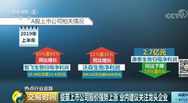在已經(jīng)公布的2019年半年度業(yè)績(jī)中:智飛生物歸母凈利潤(rùn)10.58億元~12.62億元,同比增長(zhǎng)55%~85%;沃森生物凈利潤(rùn)約8100萬元~9600萬元,同比增長(zhǎng)11%~31%;康泰生物歸母凈利潤(rùn)為:2.7億元,同比下降15%-5%。