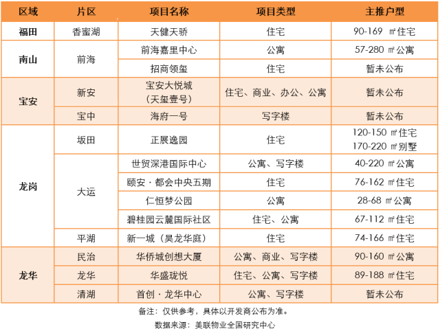 深圳市8月份入市項目預測列表