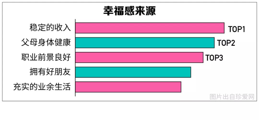深入研究發(fā)現(xiàn),男性對(duì)“擁有心儀對(duì)象”的需求比例(6.67%)略高于女性(3.17%),女性則是在擁有要好朋友的比例(28.79%)上高于男性(6.67%),且因?yàn)榉€(wěn)定收入感到幸福的女性比例(60%)比男性(53%)更高??梢?,女性更容易從穩(wěn)定的收入中獲得幸福感。