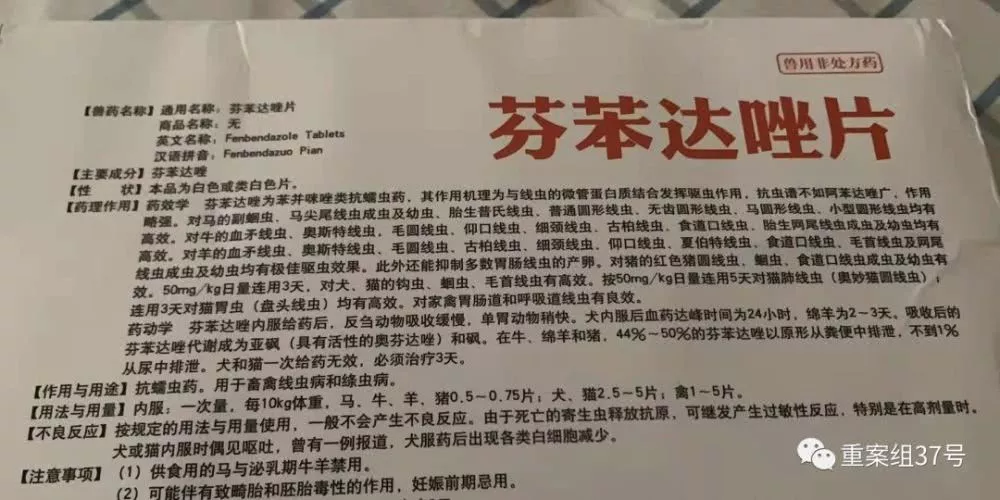 ▲國產芬苯達唑片說明書