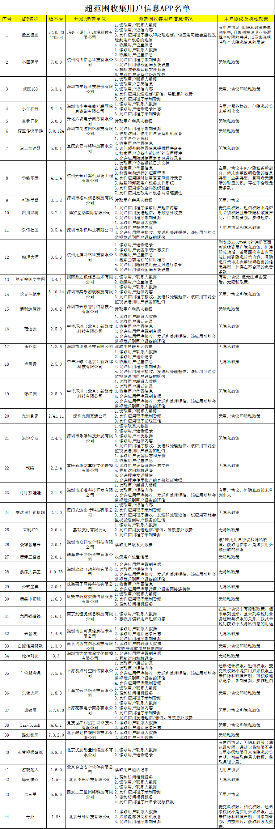 深圳特區(qū)報(bào)2019年8月15日訊 廣東省公安廳8月14日消息,根據(jù)公安部"凈網(wǎng)2019"專項(xiàng)行動(dòng)和中央網(wǎng)信辦、工信部、公安部、市場(chǎng)監(jiān)管總局四部委關(guān)于開(kāi)展 APP違法違規(guī)收集使用個(gè)人信息專項(xiàng)治理行動(dòng)部署,全省公安機(jī)關(guān)持續(xù)加大超范圍收集用戶信息 APP清理整治力度。2019年7月份,廣東警方共監(jiān)測(cè)發(fā)現(xiàn)490余款 APP存在超范圍收集用戶信息行為,其中"漫星漫畫""游戲超人""樂(lè)訊社區(qū)"等44款 APP,存在超范圍讀取用戶通話記錄、短信內(nèi)容,收集用戶通訊錄、位置信息,超權(quán)限使用用戶設(shè)備麥克風(fēng)、攝像頭等突出安全問(wèn)題。目前,有關(guān)監(jiān)測(cè)情況已上報(bào)公安部通報(bào)屬地公安機(jī)關(guān)開(kāi)展清理整治。
