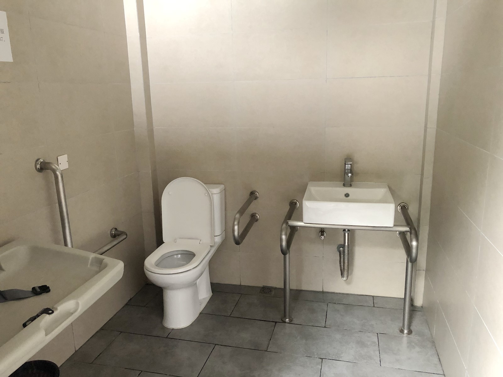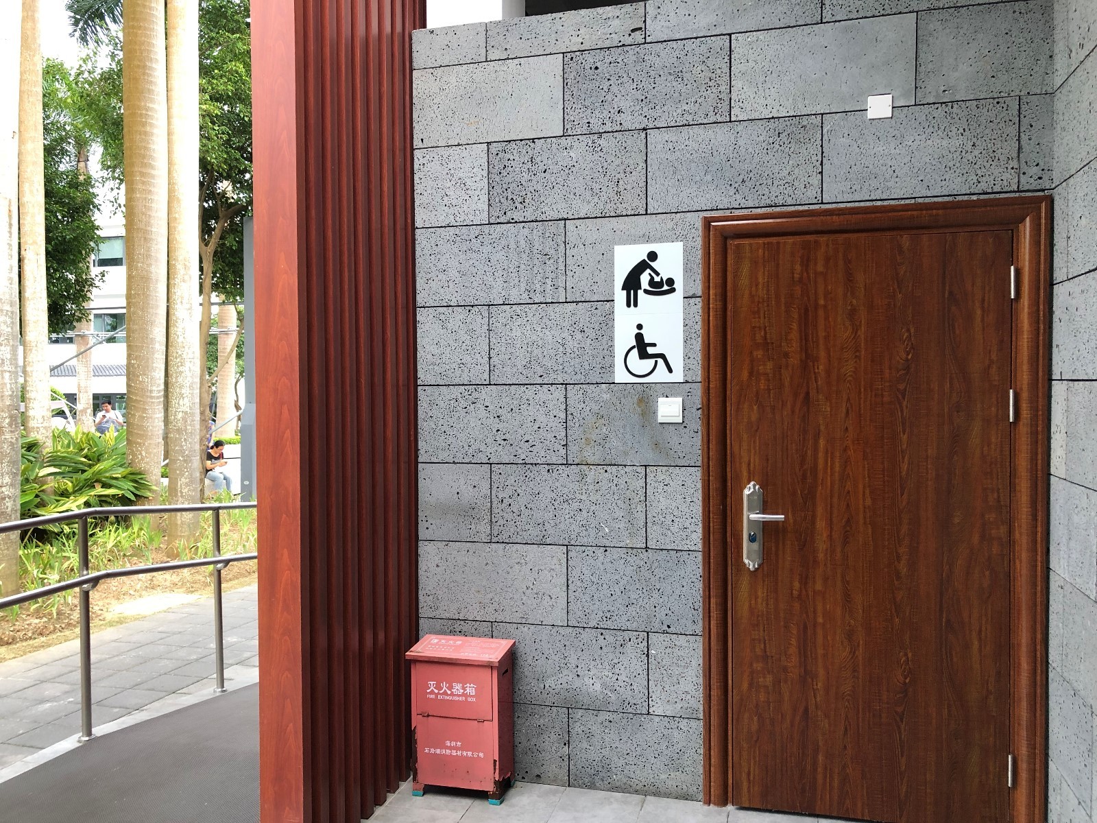 ▲記者來到深圳人頗為喜愛的“網紅公園”——香蜜公園采訪時,正值夕陽西下,天氣由炎熱略轉涼爽,很多家長帶著孩子在兒童游樂場里嬉戲。游樂場附近有一個公共廁所,記者沒有找到親子衛(wèi)生間,但也在公廁門口發(fā)現(xiàn)了母嬰室、殘疾人衛(wèi)生間“二合一”的衛(wèi)生間,內有一個帶扶手的坐便器和母嬰設施。