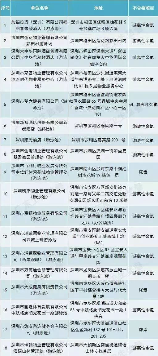近日,廣東省部分城市游泳場所水質(zhì)抽檢情況第一批名單公布
