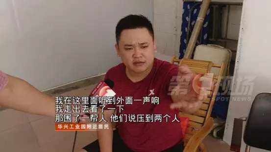 在華興工業(yè)園門(mén)口,記者看到一根2立方米左右的水泥柱子和車(chē)輛出入口的欄桿都倒伏在地面上。而在水泥柱子底下,以及旁邊的路面上,斑駁的血跡清晰可見(jiàn)。