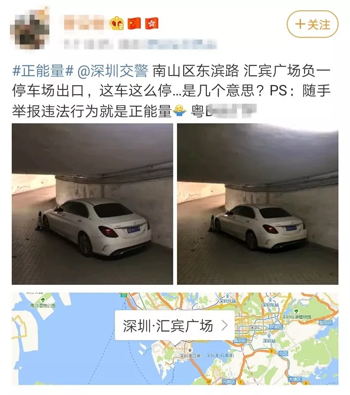 深圳交警微博也多次接到關于車輛在停車場內(nèi)亂停放的舉報。