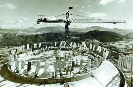 1984年9月4日,國貿(mào)大廈封頂。江式高攝