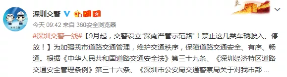 9月起,交警設(shè)立“深南嚴(yán)管示范路”!禁止這幾類車輛駛?cè)?、停放?/p>