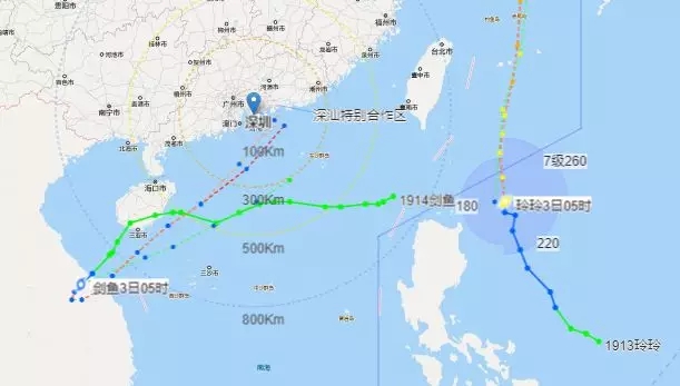 見(jiàn)圳客戶端.深圳新聞網(wǎng)2019年9月3日訊 9月2日,今年第13號(hào)臺(tái)風(fēng)“玲玲”(強(qiáng)熱帶風(fēng)暴級(jí))生成,將向臺(tái)灣以東洋面靠近。今日2時(shí),記者從深圳市氣象臺(tái)獲悉,另一個(gè)南海低壓也已加強(qiáng)為今年第14號(hào)臺(tái)風(fēng)“劍魚(yú)”(熱帶風(fēng)暴級(jí)),5時(shí)其中心位于深圳市西南方大約1000公里,中心附近最大風(fēng)力8級(jí)(64公里/小時(shí)),中心最低氣壓995百帕。今明兩天其將在越南中部沿海一帶徘徊打轉(zhuǎn),之后可能轉(zhuǎn)向東北方向移動(dòng)并靠近廣東沿海。