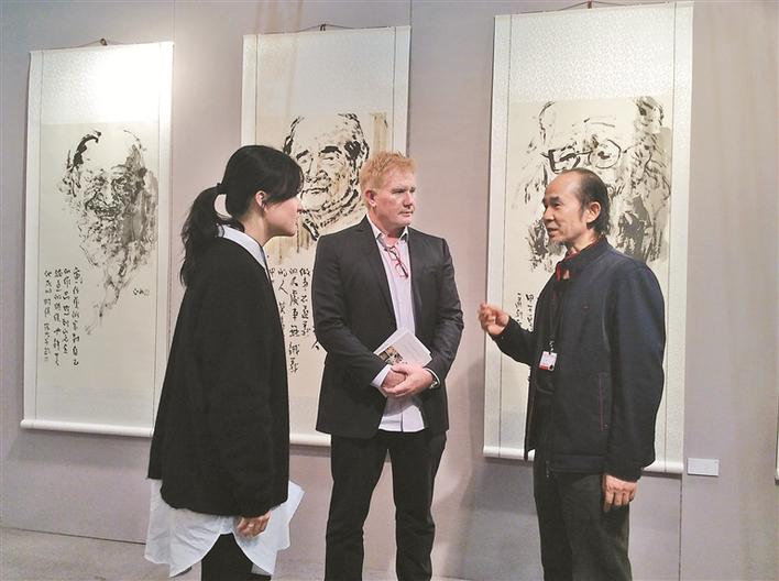 ▲2015,在“2015洛杉磯藝術(shù)博覽會(huì)”的中國(guó)國(guó)家展現(xiàn)場(chǎng),莊玉君與觀展者交流。