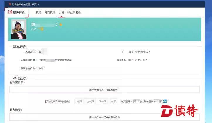 模塊中涉及到中介機(jī)構(gòu)和中介人員的星級評價,來自深圳市房地產(chǎn)中介協(xié)會(以下簡稱“深房中協(xié)”)與各大中介機(jī)構(gòu)組成的專家委員的定期聯(lián)合評定。無論是中介人員還是中介機(jī)構(gòu),都需從一星經(jīng)數(shù)次評選提升至五星等級,越高星級的人員與機(jī)構(gòu),意味著更少的投訴信息與更加優(yōu)良的誠信記錄。目前上線的模塊中,僅有大約10%的中介人員獲得了五星認(rèn)定。