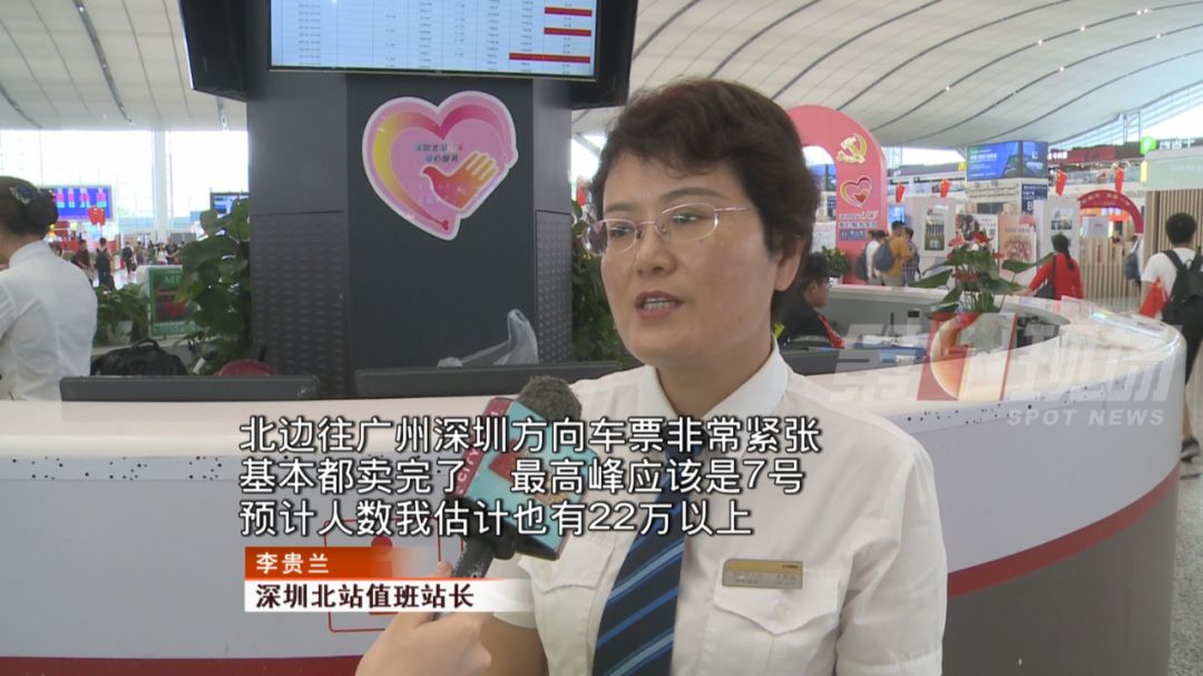 深圳北站值班站長(zhǎng)表示,北站已進(jìn)入客流返程高峰,到達(dá)旅客今天將達(dá)24萬人次,10月7日大部分來往廣深兩地的車票都已售罄,預(yù)計(jì)客流返程最高峰將出現(xiàn)在10月7號(hào)。