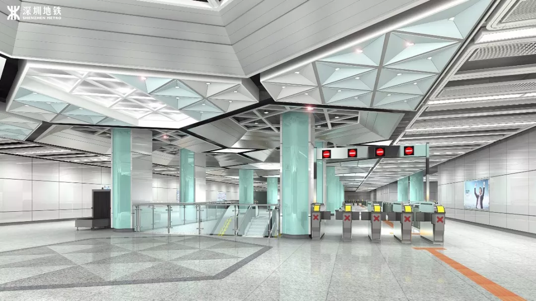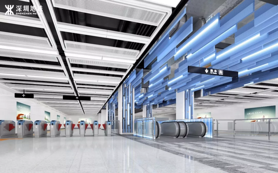 9號線二期全線方案在統(tǒng)一的設(shè)計理念下,將特色車站做到一站一景,同時結(jié)合了站點周邊特色元素,重點站體現(xiàn)區(qū)域文化特色,打造其成深圳體現(xiàn)“宜居科技、智慧生活”的特色線路。