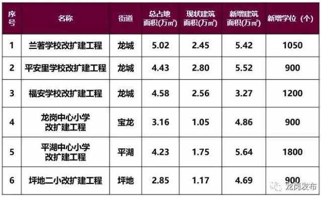 據(jù)了解,明年,龍崗區(qū)將重點推動9個學(xué)校項目,其中,3個新建、6個改擴建,全部建成后將新增255個班級、12750個學(xué)位!