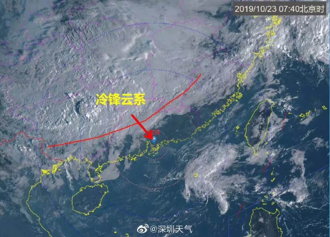 目前冷空氣前鋒已到達粵北,預(yù)計今日傍晚前后到貨,深圳屆時深圳云量增多,可能伴隨著分散小雨。