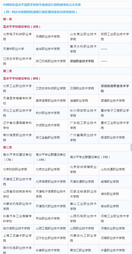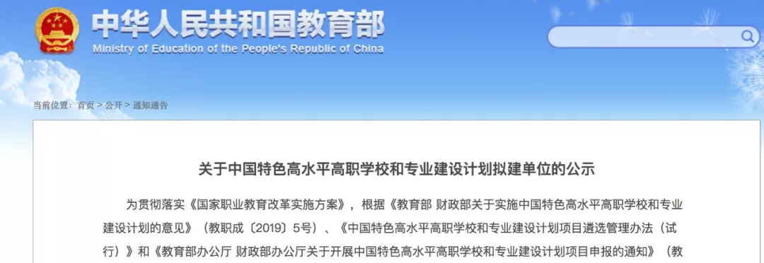 今天上午,教育部和財(cái)政部正式發(fā)布《關(guān)于中國(guó)特色高水平高職學(xué)校和專業(yè)建設(shè)計(jì)劃擬建單位的公示》,經(jīng)高職學(xué)校自愿申報(bào),省級(jí)教育部門、財(cái)政部門審核推薦,中國(guó)特色高水平高職學(xué)校和專業(yè)建設(shè)計(jì)劃項(xiàng)目建設(shè)咨詢專家委員會(huì)評(píng)審,教育部、財(cái)政部審定,擬立項(xiàng)中國(guó)特色高水平高職學(xué)校和專業(yè)建設(shè)計(jì)劃建設(shè)單位197個(gè)(簡(jiǎn)稱“雙高計(jì)劃”),現(xiàn)予公示。公示期7天(2019年10月25日—10月31日)。