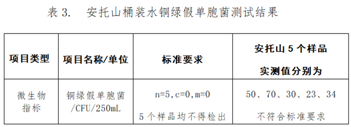 近日,2019年桶裝水比較試驗報告出爐。試驗結果表明,11款桶裝水安全放心、品質好,全部通過感官、理化、污染物和微生物安全指標測試。另外安托山包裝飲用水測出銅綠假單胞菌,不符合國家標準要求,存在安全風險。