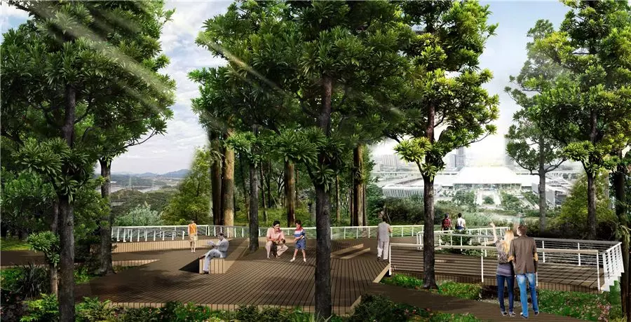 充分利用山頂?shù)匦?,以“人+才”的形式組合而成,取名為人才臺(tái)。節(jié)點(diǎn)視線佳,東望深圳北站商務(wù)區(qū),西眺長(zhǎng)嶺陂水庫(kù),是一個(gè)絕佳的休憩觀景平臺(tái)。