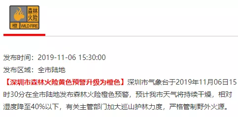 深圳市氣象臺已于昨日(6日)15時30分將森林火險黃色預(yù)警升級為橙色。各位小伙伴一定要記得,居家或外出注意防火和安全用火。