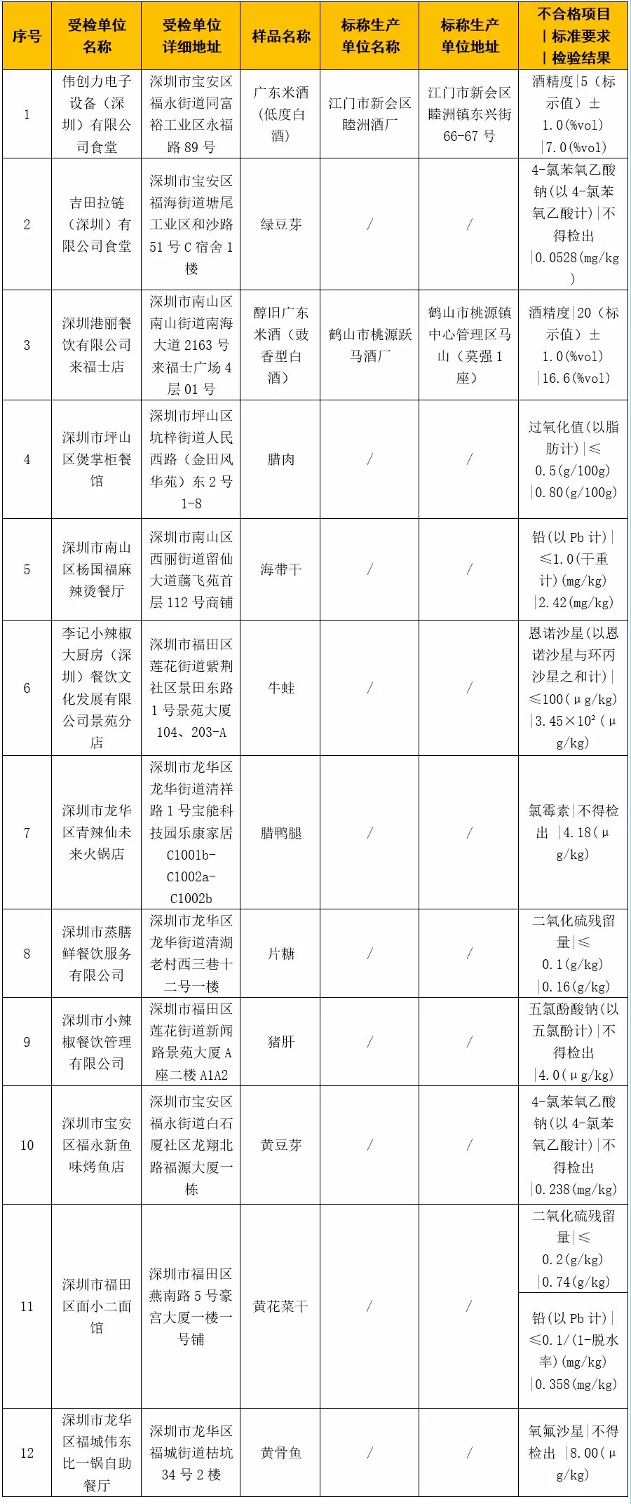 在本次抽檢中,有一批次海帶干被檢出不合格,受檢單位為深圳市南山區(qū)楊國(guó)福麻辣燙餐廳,不合格項(xiàng)目是鉛(以Pb計(jì))。